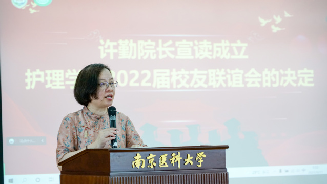 会议伊始,许院长首先对2022届毕业生们送上了毕业祝福,也看到了同学们在三四年的时光中,在改变中日渐成长,成长中越发沉稳。许院长也对他们提出了一些期许:希望在未来的工作和学习岗位上要脚踏实地,追求高远,执着坚守,保持坚韧,要在不懈的学习中完善自己,在不懈的追求中提升自己,在护理岗位上发光发热。为了加强校友工作建设,许院长宣读成立九游娱乐(JIUYOU)官方网站_9YOU GAME2022届校友联谊会,并宣布王敏同学担任研究生校友联席会会长,陈龙同学担任本科生校友联席会会长。