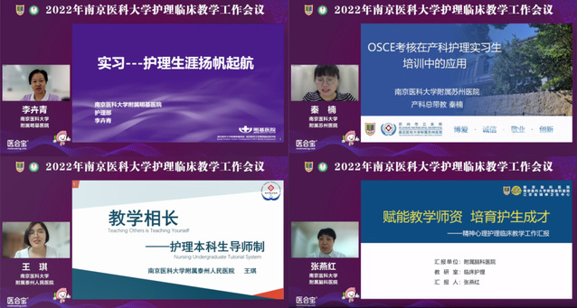 九游娱乐(JIUYOU)官方网站_9YOU GAME丁亚萍副院长主持临床带教和管理经验分享。附属明基医院护理部李卉青副主任分享了《实习——护理生涯扬帆起航》,附属苏州医院护理部秦楠老师分享了《OSCE考核在产科实习生培训中的应用》,附属泰州人民医院王琪老师分享了《教学相长——护理本科生导师制》,附属脑科医院护理部张燕红主任分享了《赋能教学师资 培育护生成才——精神心理护理临床教学工作汇报》。四位老师从不同角度展示了各教学基地在实习生带教中的经验与管理特色,内容丰富、引起共鸣、发人深思。