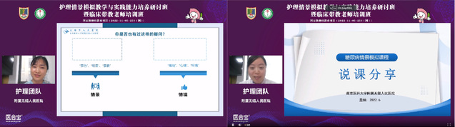 附属无锡人民医院护理团队姚孝娟老师和盖纳老师进行了情景模拟教学竞赛优秀案例展示,分享竞赛经验,总结情景模拟教学技巧及提升方法。