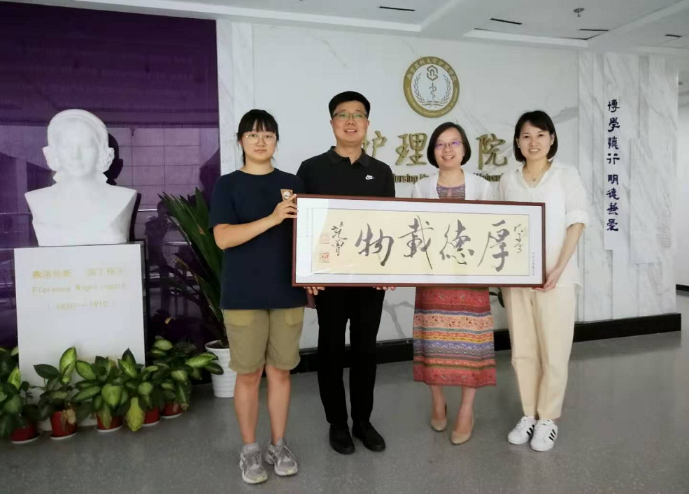 欢送环节,访学教师向学院赠送纪念品“厚德载物”,祝愿学院以深厚的德泽育人利物,培养更多更高素质的护理人才;学院向访学教师赠送定制保温杯,表达了学院对访学教师“一温杯、一辈子”的牵挂和期待。