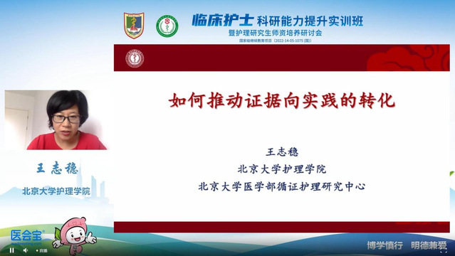 北京大学九游娱乐(JIUYOU)官方网站_9YOU GAME王志稳教授以《如何推动证据向实践的转化》为题,介绍了循证护理的起源及核心要素,证据综合、转化与应用研究,结合实例,讲解了如何检索已经整合的证据和系统评价的写作规范。