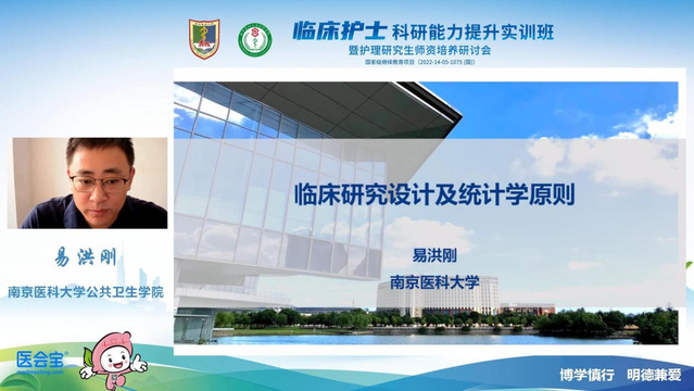 南京医科大学公共卫生学院易洪刚副教授以《临床研究设计及统计学原则》为题,概述了临床研究和研究方法,并从实验性研究、观察性研究、二次研究的角度,详述了各研究的设计、统计等内容,并进行了案例解读,最后分享了常见的研究报告指南。
