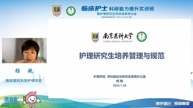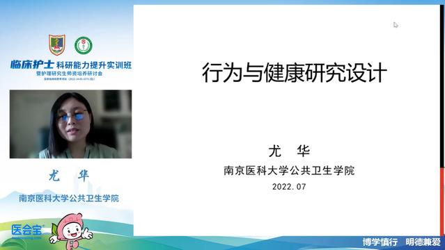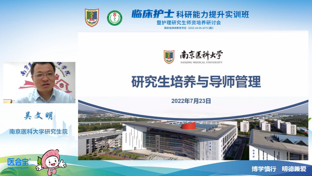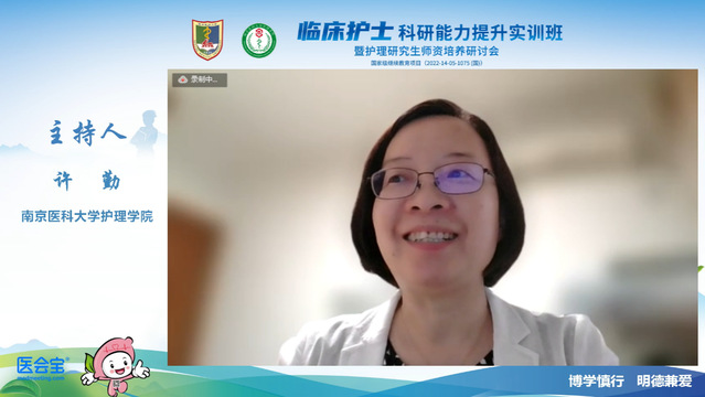 为进一步加大临床提升力度,推进临床护理科研发展,培育一支高水平“双师型”师资队伍,时加快研究生教育综合改革,培养德才兼备的高层次医学人才,打造学养深厚、术业精进、潜心育人的学术队伍,九游娱乐(JIUYOU)官方网站_9YOU GAME2022年7月23-27日举办国家级继续教育项目“临床护士科研能力提升实训班(2022-14-05-1075(国))”暨护理研究生师资培养研讨会。南京医科大学各附属医院及教学医院的带教老师、新疆克州人民医院、青海省人民医院的师生、九游娱乐(JIUYOU)官方网站_9YOU GAME导师以及研究生参加了实训,会议通过医会宝平台全程直播,参会人数达600余人。开幕式由九游娱乐(JIUYOU)官方网站_9YOU GAME许勤院长主持。