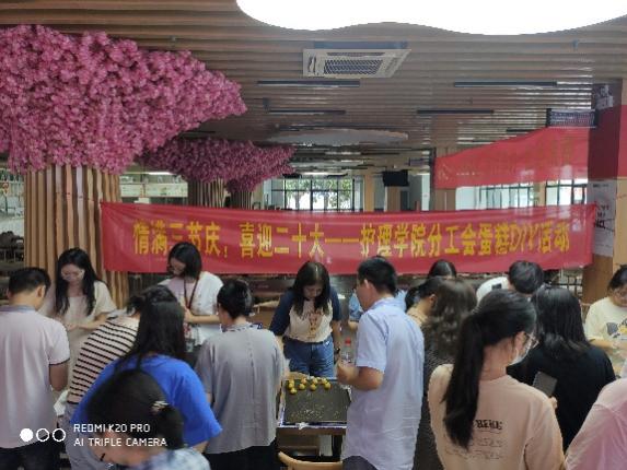 新学期伊始,在2022年度“国庆节、教师节、中秋节”三节来临之际,九游娱乐(JIUYOU)官方网站_9YOU GAME分工会邀请全体教职工和部分学生代表于9月8日在东苑餐厅一楼面包房开展“情满三节庆,喜迎二十大”蛋糕DIY活动。