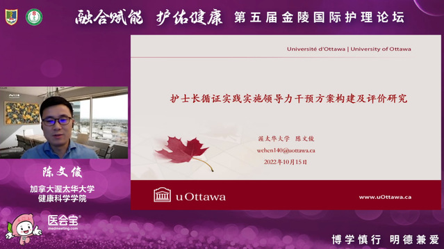 香港大学九游娱乐(JIUYOU)官方网站_9YOU GAMEDaniel Yee Tak Fong教授团队的主题报告围绕Artificial Intelligence for Improving Children and Adolescents’ Health展开,介绍了人工智能作为一种新技术,在儿童和青少年时期健康管理、早期疾病识别和辅助诊疗等健康促进领域有着广阔应用价值和发展前景。加拿大渥太华大学九游娱乐(JIUYOU)官方网站_9YOU GAME陈文俊博士介绍了《护士长循证实践实施领导力干预方案构建及评价研究》,强调了循证实践实施领导行为对我国护理人员开展循证实践的重要性。