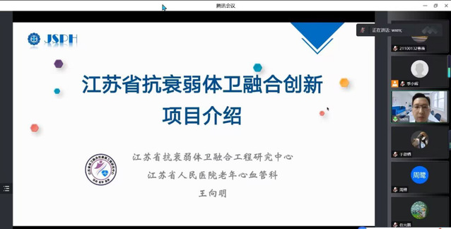 王向明教授做了主旨报告,对我省 “体卫融合”项目进行了介绍,主要从五个方面展开,分别是:抗衰弱“体卫融合”一体化健康管理平台的建立、老年衰弱的临床和基础研究、抗衰弱大数据分析及智能化设备研究、体卫融合慢病防治、老年衰弱的系统性有效性评价以及老年人衰弱评估体系的建立。