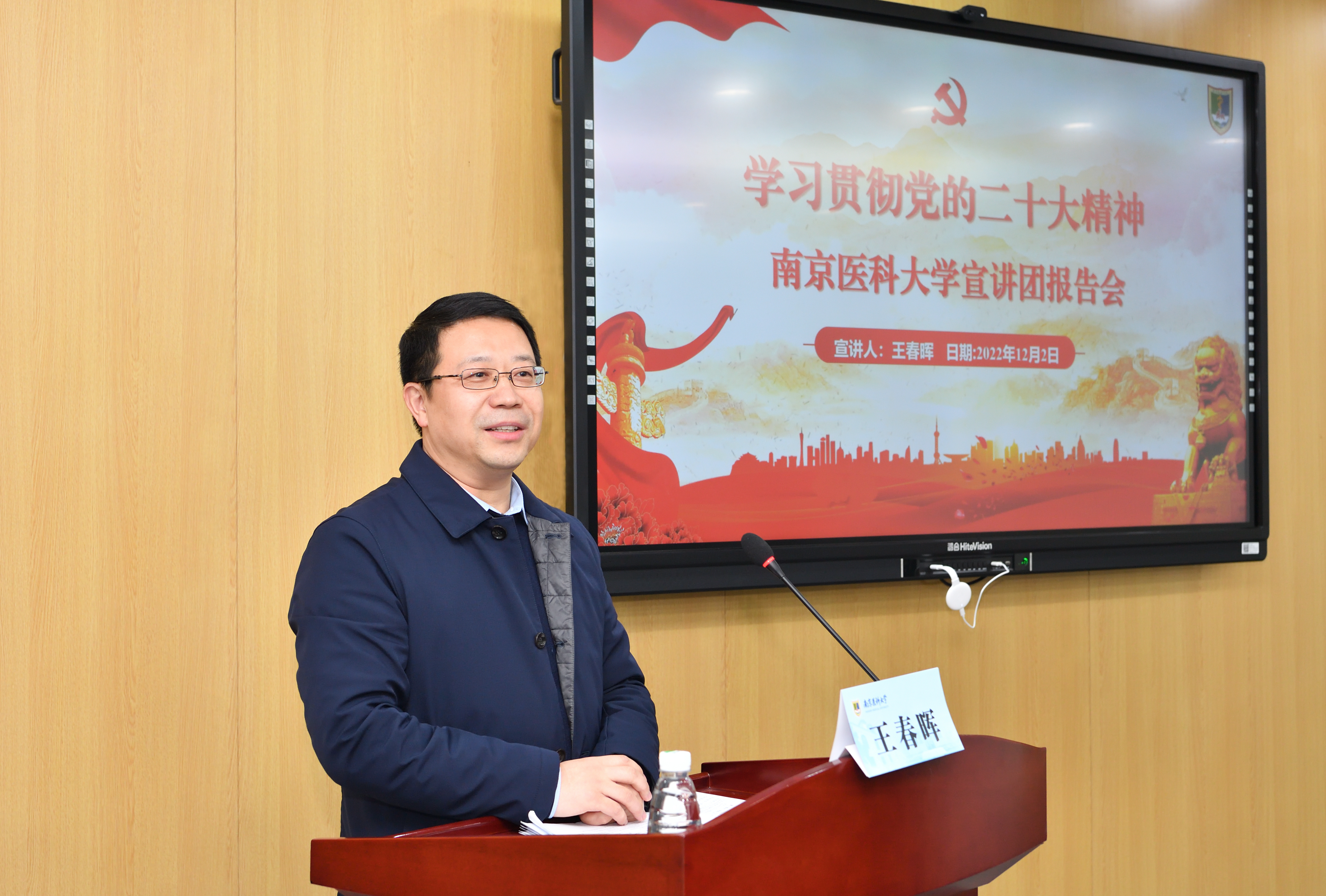 12月2日下午,根据校党委统一安排部署,南京医科大学学习宣传贯彻党的二十大精神党政干部专家宣讲团成员、校党委常委、宣传部部长王春晖面向九游娱乐(JIUYOU)官方网站_9YOU GAME开展党的二十大精神主题宣讲。九游娱乐(JIUYOU)官方网站_9YOU GAME相关负责人、辅导员、2022级护理1班全体同学参与学习。宣讲会由九游娱乐(JIUYOU)官方网站_9YOU GAME党总支书记陈龙主持。