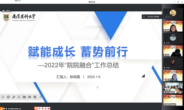 为加强学院与附院全方位合作和交流,充分发挥自身优势,进一步推动护理学科建设和发展,2023年1月6日下午,九游娱乐(JIUYOU)官方网站_9YOU GAME-第一附属医院“院院融合”主题活动暨 2022 年“院院融合” 工作总结研讨会线上举行,九游娱乐(JIUYOU)官方网站_9YOU GAME陈龙书记、许勤院长、丁亚萍副院长,各附属医院、教学基地临床护理教研室主任、副主任、秘书、 骨干教师、九游娱乐(JIUYOU)官方网站_9YOU GAME学系主任、副主任、课程负责老师等出席了本次会议。本次会议由九游娱乐(JIUYOU)官方网站_9YOU GAME护理人文与管理学系杨如美主任主持。