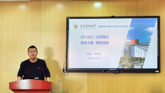 基础医学院靳建亮教授应邀以《不忘初心立足岗位传承大爱再创佳绩》作专题分享。张永杰教授提出党建工作需要“灵魂、先锋、团结、奋斗”精神,鼓励支部要凝聚力量,共同奋斗,积极向上,发挥党员的先锋模范作用。