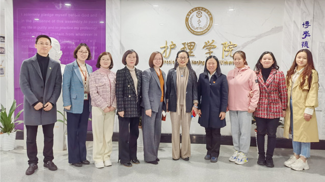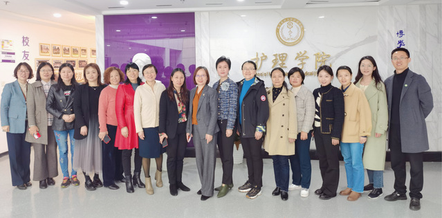 许勤院长代表学院对中国人民解放军陆军军医大学、南华大学、遵义医科大学、广西医科大学和武汉大学五所高校护理同仁的到访表示热烈欢迎,并从学院发展历程、人才培养、学科建设、教育教学、科学研究、国际交流等方面介绍了学院基本情况。