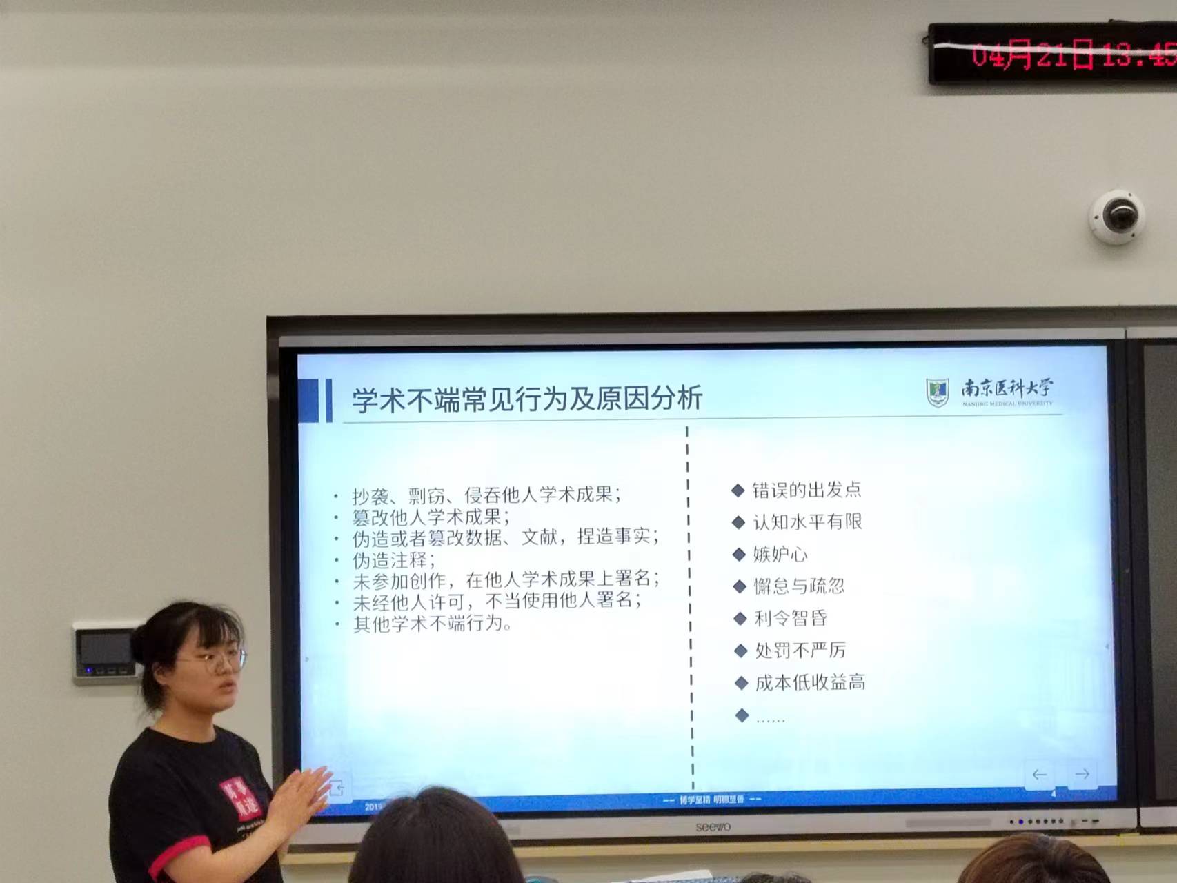 随后,九游娱乐(JIUYOU)官方网站_9YOU GAME研究生会执行主席唐琳做科研诚信的专题宣讲。“人无信则不立”,科研更是如此。唐琳从学术不端的定义、原因分析、过往学术不端的实例出发,警示大家坚守学术道德的底线,做到立诚于心,树信于行。