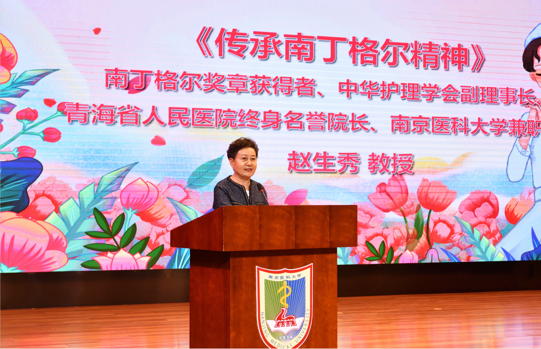 5月11日下午,赵生秀教授在大学生活动中心出席“青春践行二十大 团结奋进新征程”授帽传光仪式,为现场师生作了题为《传承南丁格尔精神》的讲座,她希望同学们立大德、有良心、能专心,始终坚持人民至上、生命至上,坚持守正创新、与时俱进,为推动中国护理事业的高质量发展和“健康中国”建设贡献自己的力量。