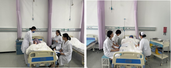 本次考核采取OSCE形式,共设护理评估站、护理技能操作站以及健康教育站3个站点,由研究生导师和附属医院带教老师组成专家组担任考官。毕业班45名同学,包括全日制学术学位和专业学位研究生、非全日制专业学位研究生被分为4组,每组9-12人进行考核。