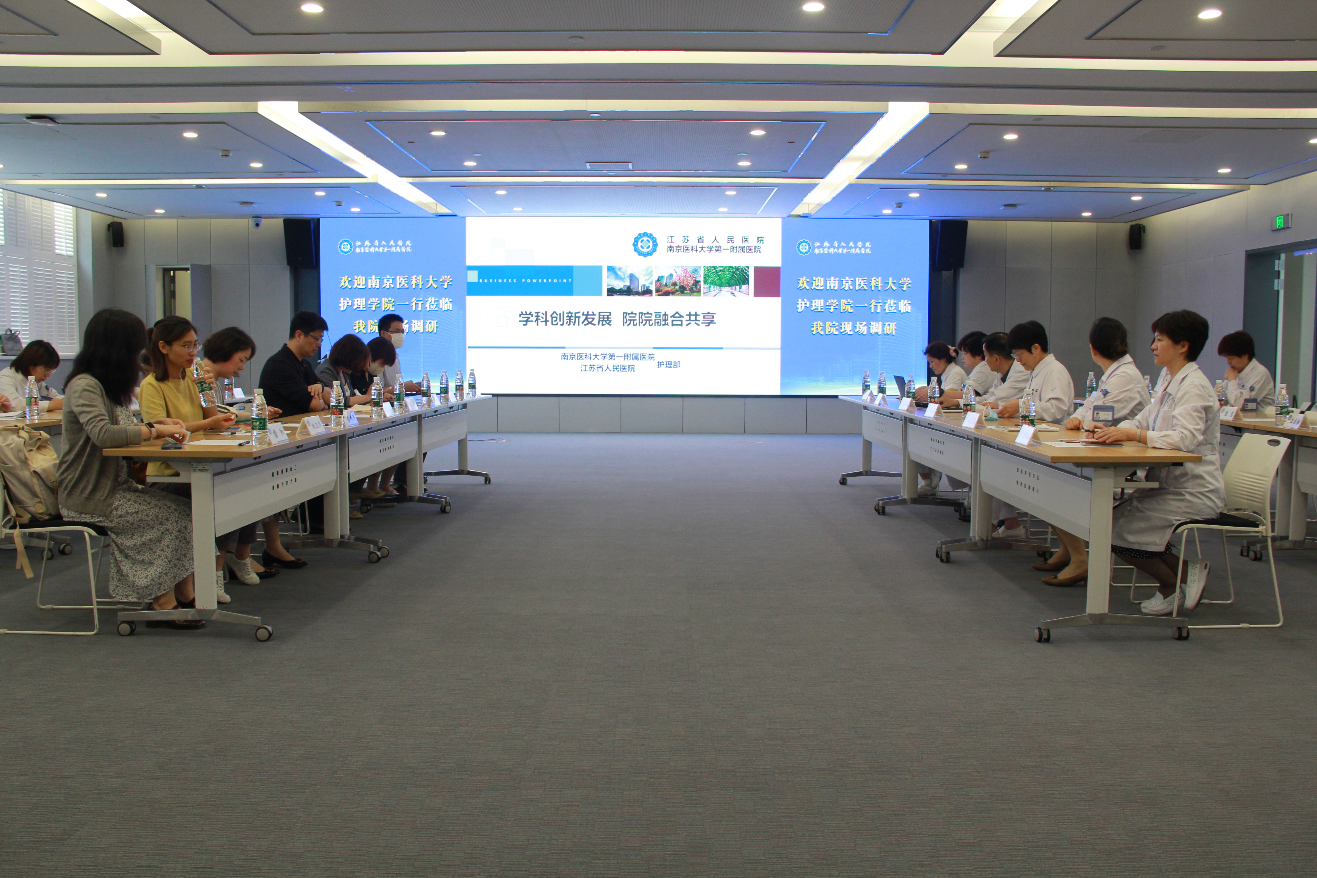 近期,为深入贯彻党的二十大精神、践行主题教育思想方针,有力推动学校与附属医院的交流合作,从科研、教学、服务等多个角度推进临床提升,提升临床护理学科内涵建设,九游娱乐(JIUYOU)官方网站_9YOU GAME党委书记陈龙,院长、党委副书记许勤带队于2023年5月29日至6月1日,在宁内三家附属综合医院:南京医科大学第一附属医院、第二附属医院、附属南京医院分别开展护理学科专项调研工作,第一附属医院副院长占伊扬,第二附属医院副院长戴春笋,附属南京医院党委书记王书奎、党委副书记、副院长戚建伟、教育处处长朱怀刚、教育处副处长芮娜,三家附属医院护理部主任及护理团队,优秀校友代表,九游娱乐(JIUYOU)官方网站_9YOU GAME党委副书记、副院长苏益民,副院长丁亚萍,学科办、党政办、教研办、学工办及研究中心等负责同志参加调研。