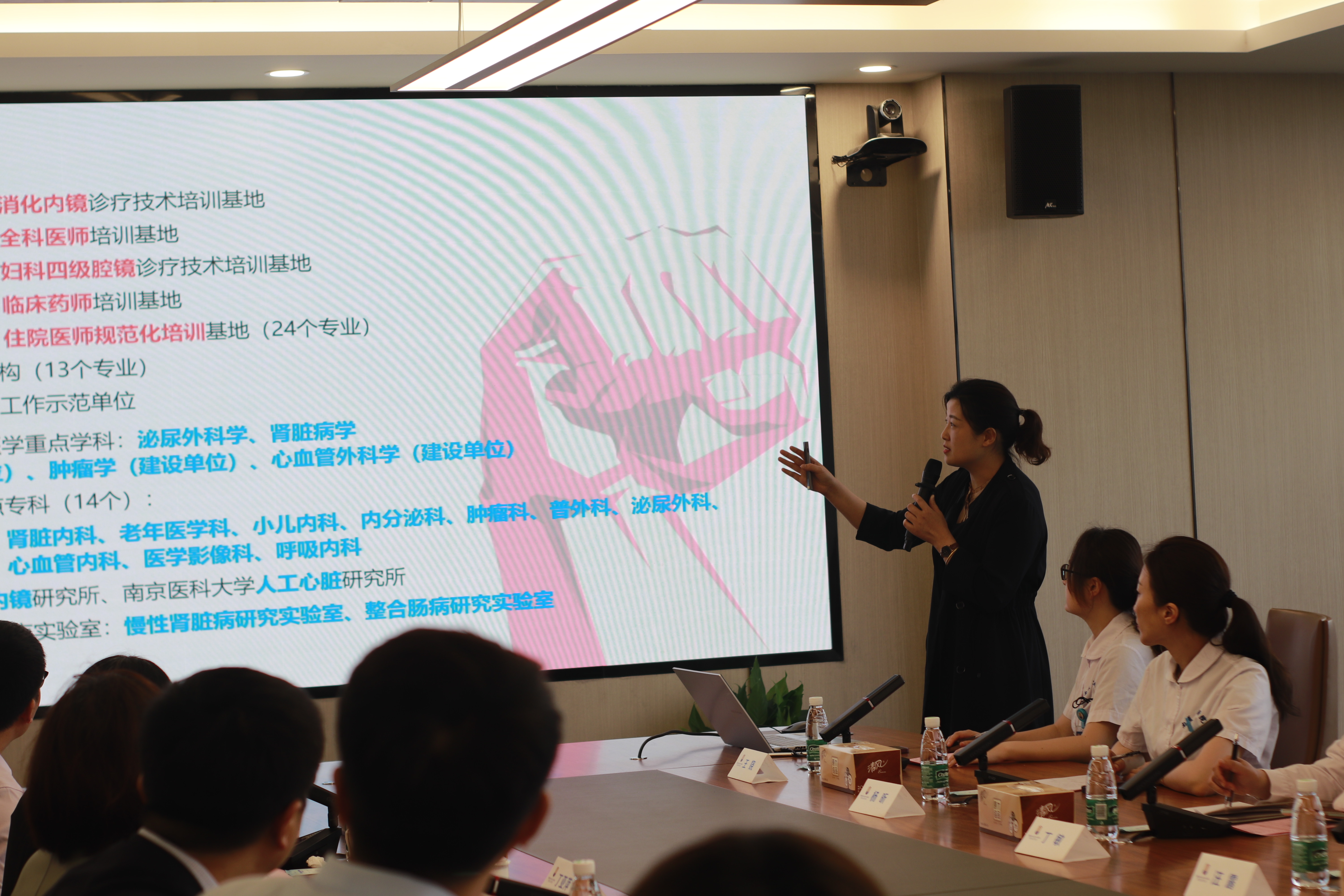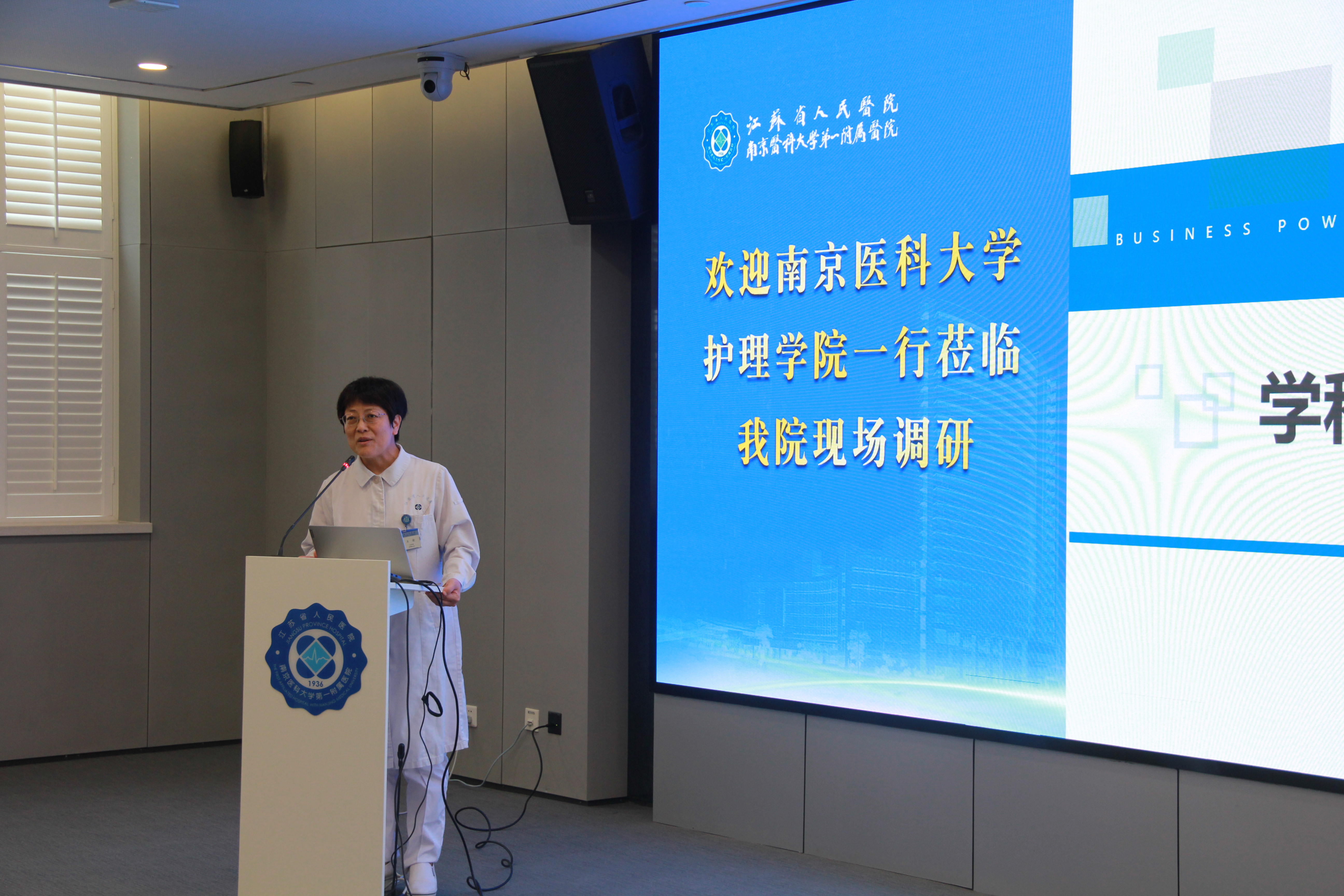 本次调研聚焦宁内附属综合医院护理学科基本情况、专科发展特色、师资队伍与资源、人才培养质量、科学研究水平、社会服务与学科声誉等方面,第一附属医院护理部主任王荣、第二附属医院护理部副主任潘菲、附属南京医院护理部主任陈玉红分别介绍了三所附属医院的护理学科概况、学科发展规划、教育教学及院院合作情况,充分展示学科建设特色。