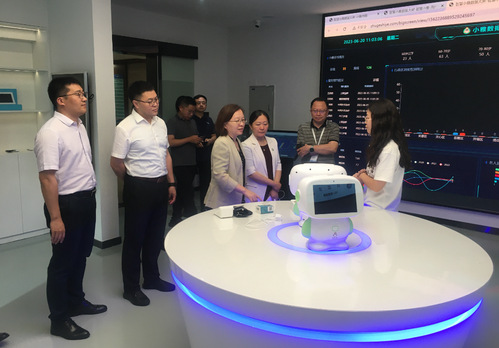交流会后,许勤院长一行参观了湘雅九游娱乐(JIUYOU)官方网站_9YOU GAME新建的办公室、智慧交互教室互动教学平台、VR仿真实训室、母婴实训室和院史馆等,实地考察了该院科研平台建设情况。