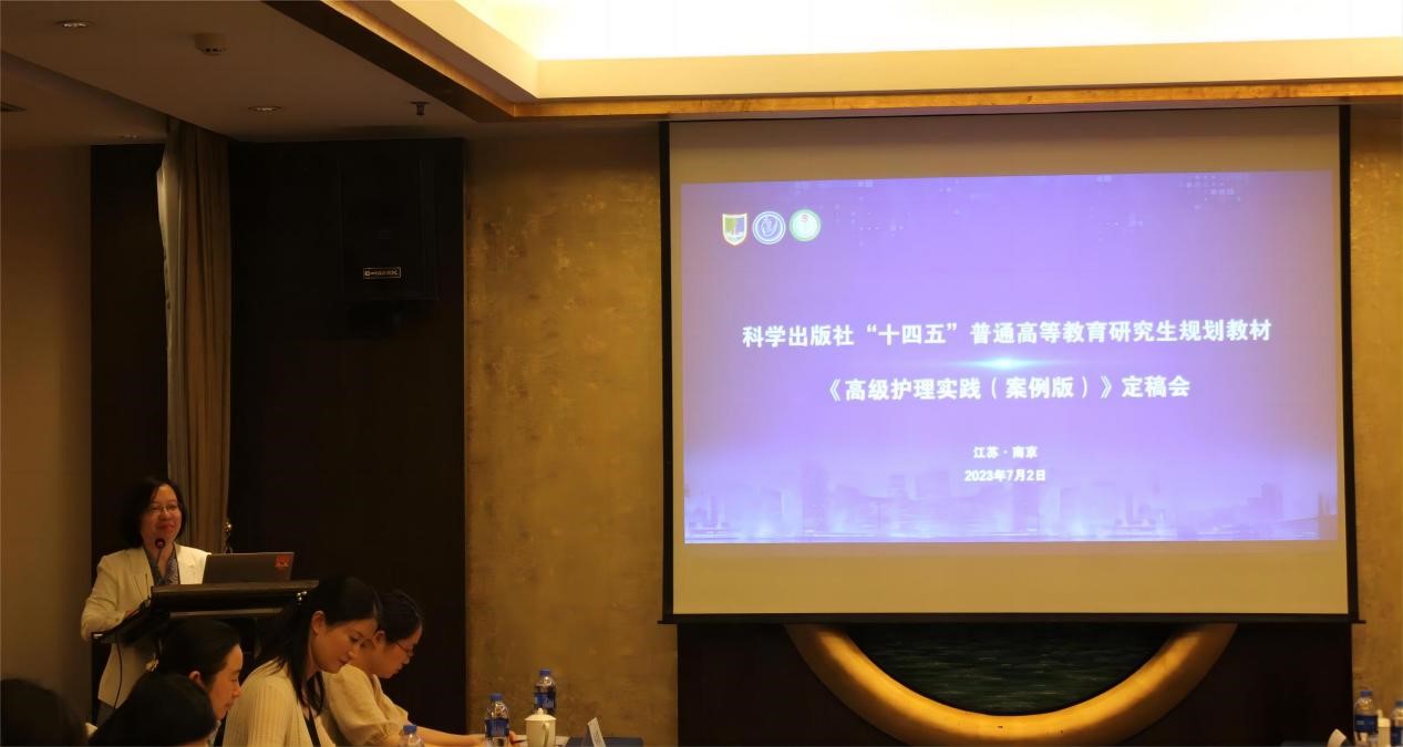 2023年7月2日,由我院许勤院长和南通大学医学院郭瑜洁副院长共同担任主编的 “十四五”普通高等教育研究生规划教材《高级护理实践(案例版)》定稿会在南京玄武饭店举行。南京医科大学研究生院吴文明副院长,九游娱乐(JIUYOU)官方网站_9YOU GAME许勤院长出席并致辞,科学出版社高等医学教育出版分社首席策划胡治国和南通大学医学院郭瑜洁副院长分别就教材编写要求和内容进行汇报,来自全国8所医学院校的20名编委参加会议。