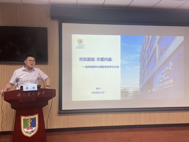 会议邀请南京医科大学医学模拟教育中心副主任、教务处副处长黄华作主题培训,他从临床教学基地技能培训中心的需求与现状、分中心论证等方面进行了分享。