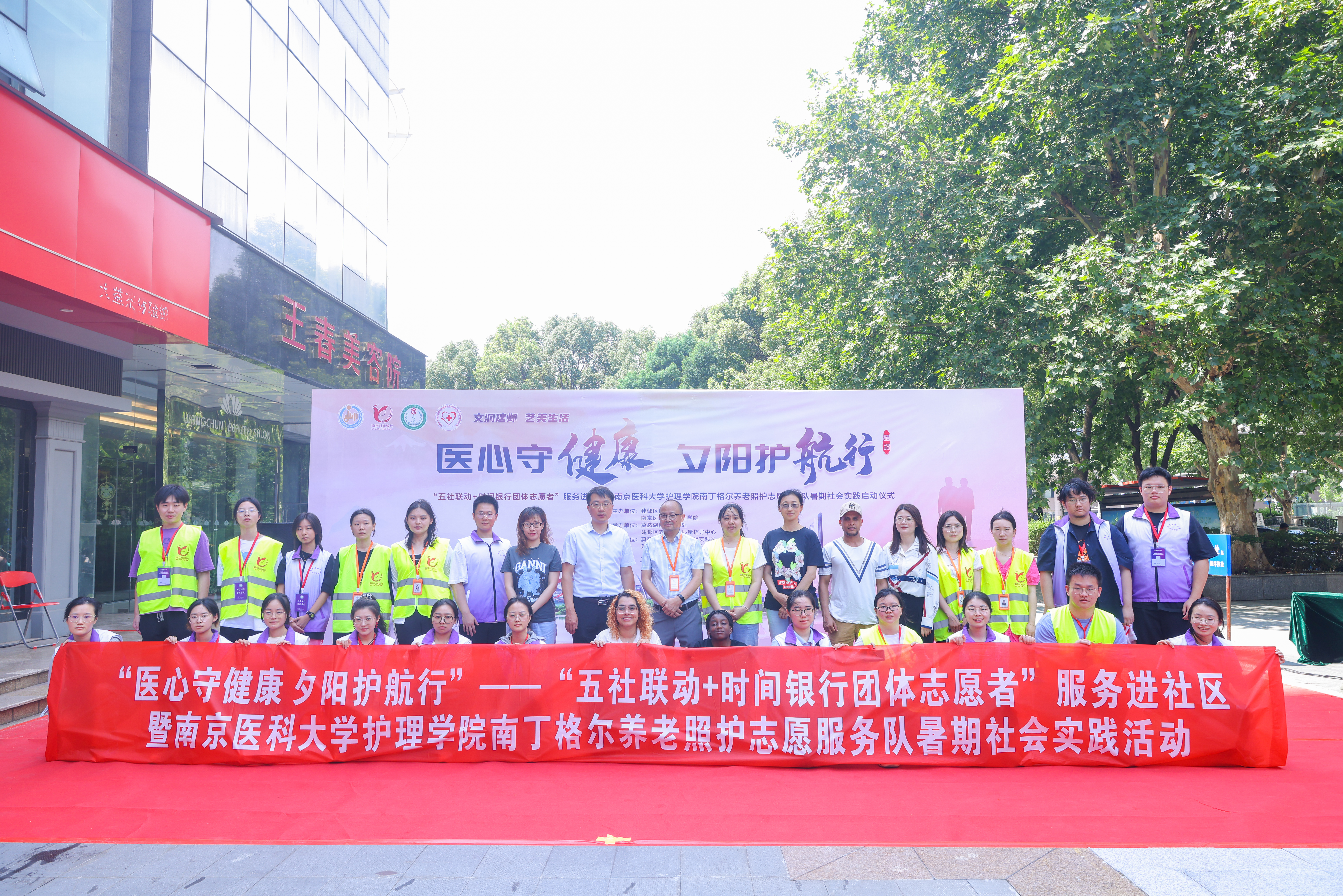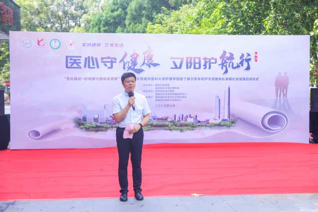 7月4日上午,九游娱乐(JIUYOU)官方网站_9YOU GAME联合南京市建邺区民政局,在莫愁湖社区广场举行“医心守健康 夕阳护航行”——九游娱乐(JIUYOU)官方网站_9YOU GAME南丁格尔养老照护志愿服务队暑期社会实践启动仪式暨“五社联动+时间银行团体志愿者”服务进社区,扎实推进学校“千村万户健康行”主题教育走深走实。