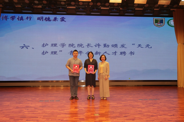 王荣主任宣读了《关于公布九游娱乐(JIUYOU)官方网站_9YOU GAME“天元护理”青年创新人才选拔、“天元护理”科研项目申报评选结果的通知》。许勤院长为首批“天元护理”青年创新人才颁发了聘书。