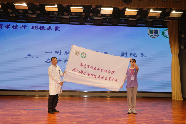 来自全国19所护理院校的29名优秀大学生入选了本次夏令营。占伊扬副院长为全国优秀大学生夏令营授旗。