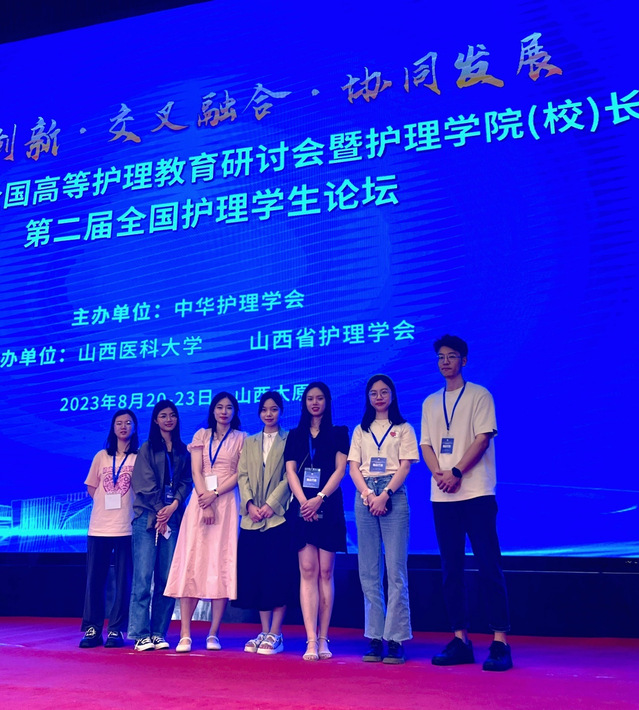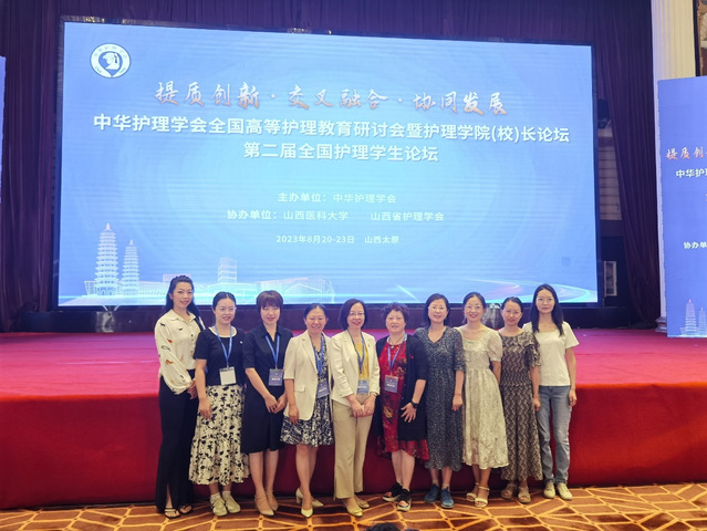 2023年8月22-23日,“中华护理学会全国高等护理教育研讨会暨九游娱乐(JIUYOU)官方网站_9YOU GAME(校)长论坛”在山西太原召开。本次会议主题为“提质创新•交叉融合•协同发展”,由中华护理学会主办,山西医科大学、山西省护理学会协办。来自全国的高等护理教育专委会、护理教师共聚一堂,探讨护理本科生、研究生教学发展,规划护理教育未来。许勤院长率8名教师参会,并受邀在大会做专题报告。我院教师季明辉、梁玮、李维颖进行电子壁报交流。