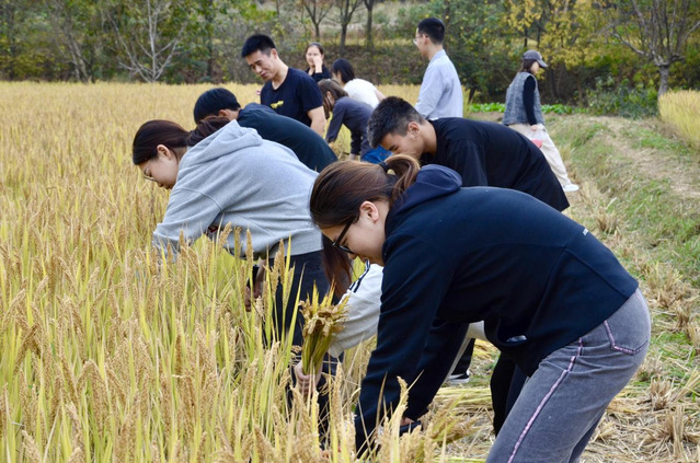 在顶冲自然村,金灿灿的水稻已经成熟,同学进入稻田开展劳动教育实践活动,体验水稻种植、收割的辛勤,分享丰收的喜悦。