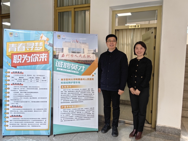 12月25日,护理学院召开附属泰州人民医院和上海市松江区中心医院校园直通车招聘会。两家医院院领导和护理部主任带领招聘考核专家来到五台校区,我院有意向的2024届毕业生纷纷返校参加招聘会。学院党委书记陈龙、党委副书记副院长苏益民、辅导员张未、辅导员张晓路来到招聘现场与用人单位对接交流,并组织指导毕业生参加招聘会。