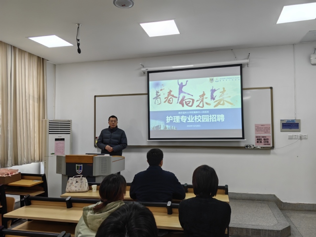 苏益民副书记主持招聘会,他对两家医院来校开展校园直通车招聘会表示诚挚地感谢。他叮嘱同学们,学院和医院合作开展的校园直通车招聘会是高效率求职与高质量就业的绿色通道,要充分把握住来之不易的就业机会。