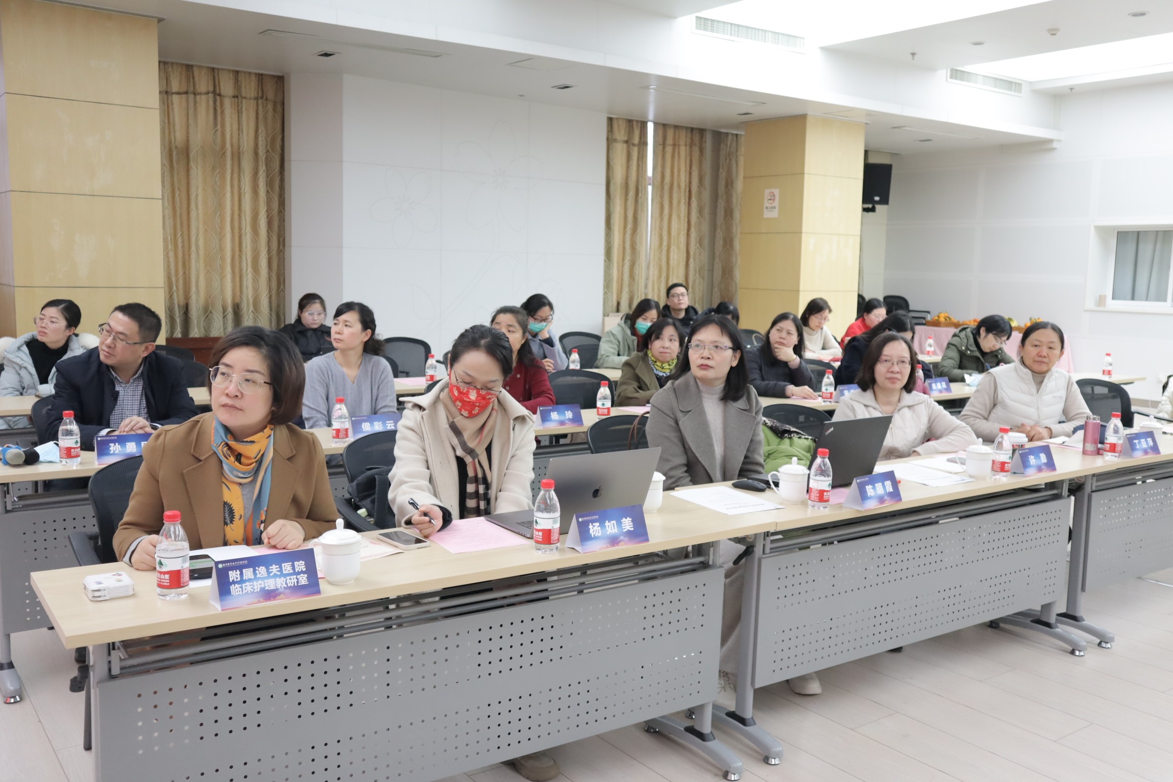 学院许勤教授、丁亚萍副教授、陈明霞副教授、李现文副教授、杨如美副教授、附属妇产医院纪委丁丰美书记、护理部主任朱珠、副主任张爱霞、秘书曾丽华以及各临床护理、社区护理教研室主任、副主任、秘书、骨干教师共同出席现场,本次活动采用线上线下同步方式举办,200余名宁外教研室老师线上参会。