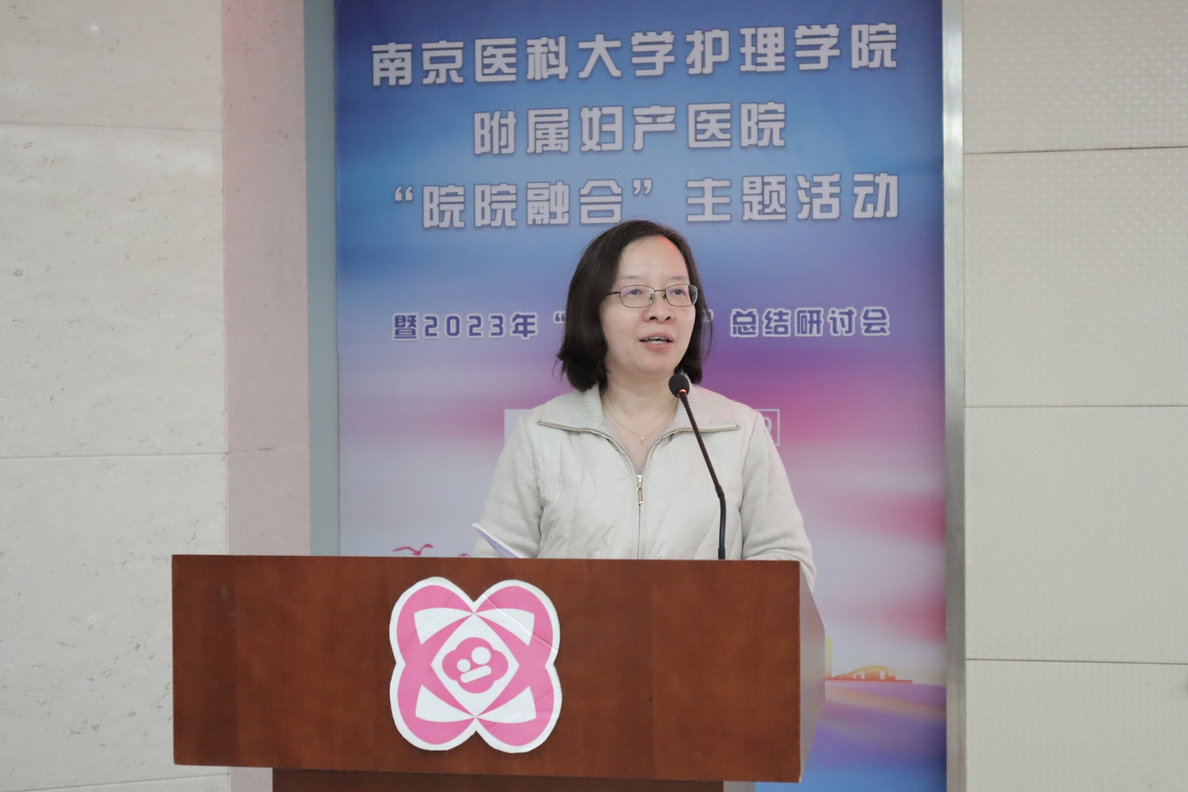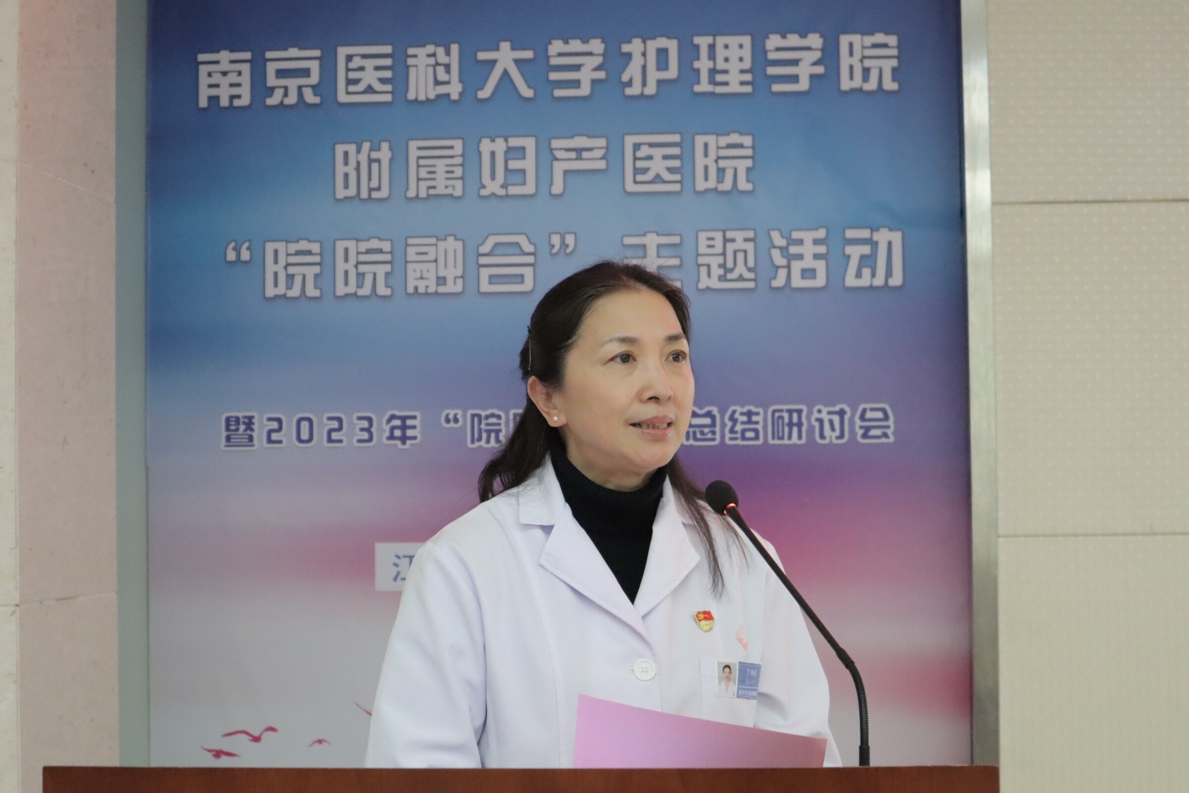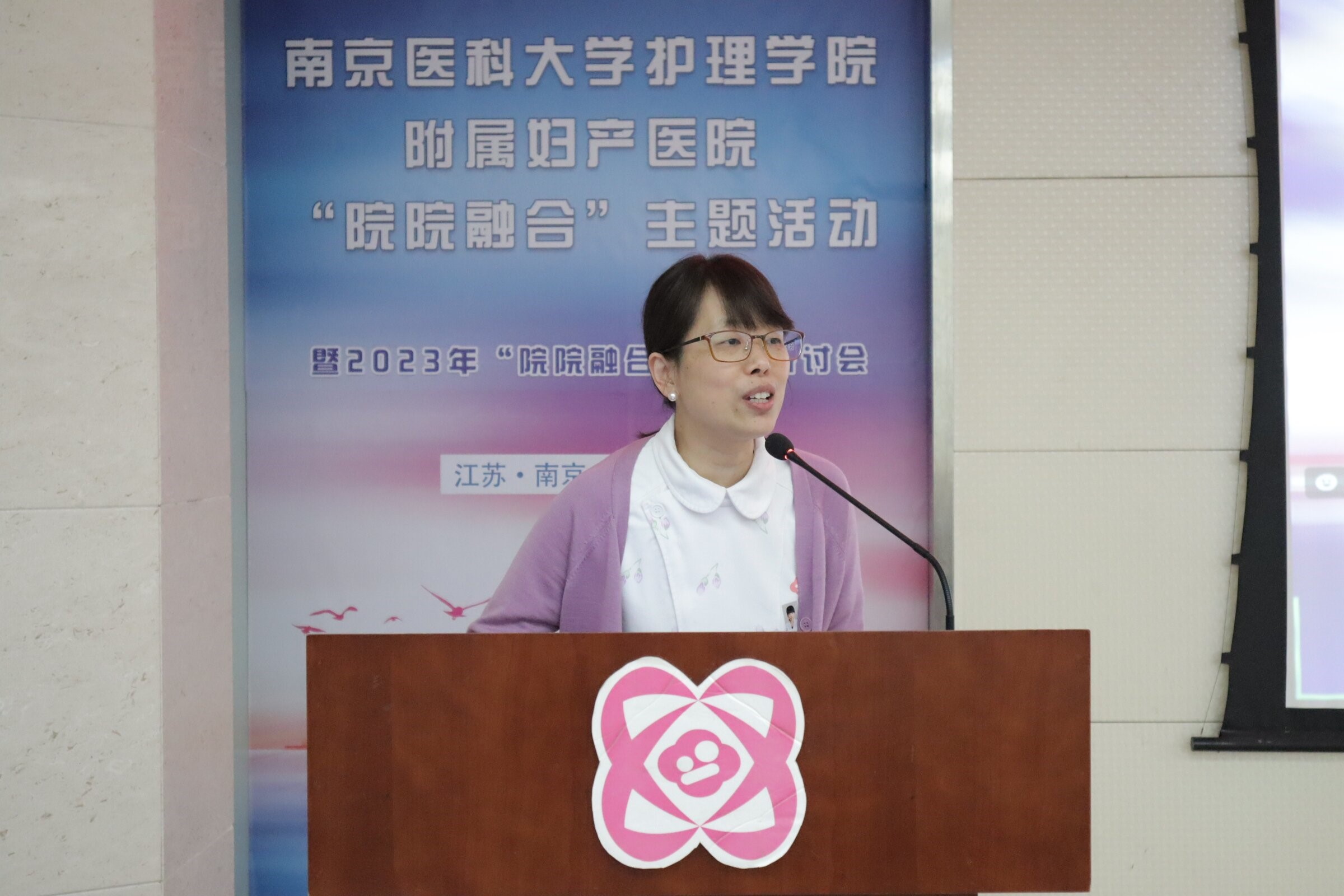 附属妇产医院纪委丁丰美书记为本次会议致辞。丁书记指出:近年来“院院融合”战略的持续推进,对促进学院和医院之间深度融合、资源整合发挥了极大作用,校院间互通有无、携手共进、推陈出新,对提升医院临床护理水平和质量起到了不可或缺的作用。