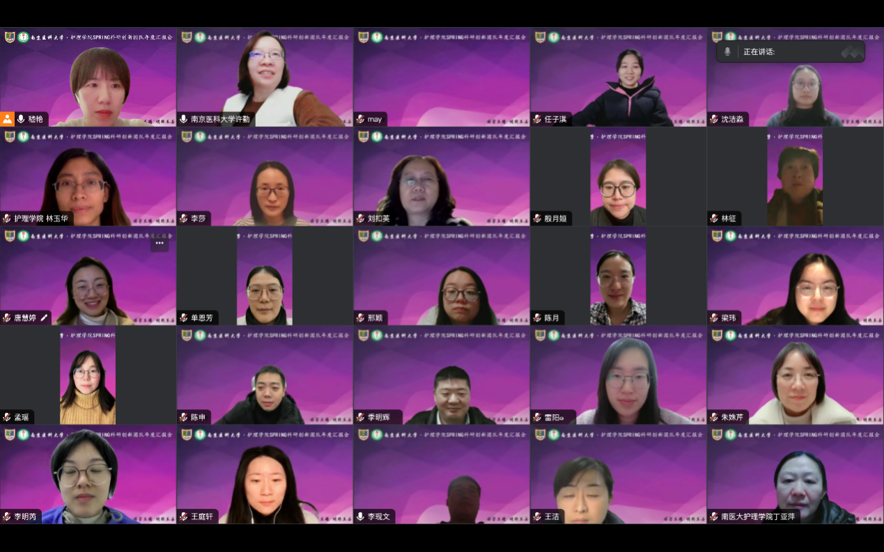 九游娱乐(JIUYOU)官方网站_9YOU GAME许勤院长首先致辞,介绍九游娱乐(JIUYOU)官方网站_9YOU GAME“SPRING科研创新团队”自2022年成立以来的建设和发展情况。教研办林玉华主任介绍本年度各团队标志性业绩成果情况。学科办嵇艳主任介绍2023年度各团队经费使用和境内外学习交流情况,解读了江苏高校优势学科建设工程四期项目护理学科立项任务书,并着重介绍整体建设目标和标志性成果,以期以目标为导向,各团队凝心聚力,砥砺奋进新征程,协力谱写新篇章。