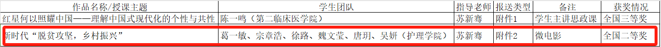 近日,第七届“我心中的思政课”全国高校大学生微电影展示活动揭晓,我院学子微电影作品《新时代“脱贫攻坚,乡村振兴”》(学生团队:葛一敏、宗章浩、徐路、魏文莹、唐玥、吴妍;指导教师:马克思主义学院苏新骞)荣获全国二等奖。