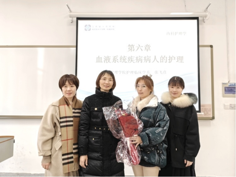 嵇艳副院长向《内科护理学》张飞彦老师赠送花束