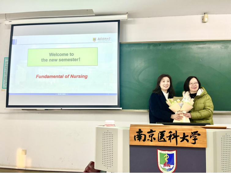 许勤院长向《护理学基础》丁婧婧老师赠送花束