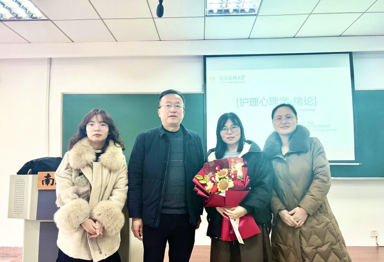 马俊书记、高兰天副书记、副院长向《护理心理学》孟瑶老师赠送花束