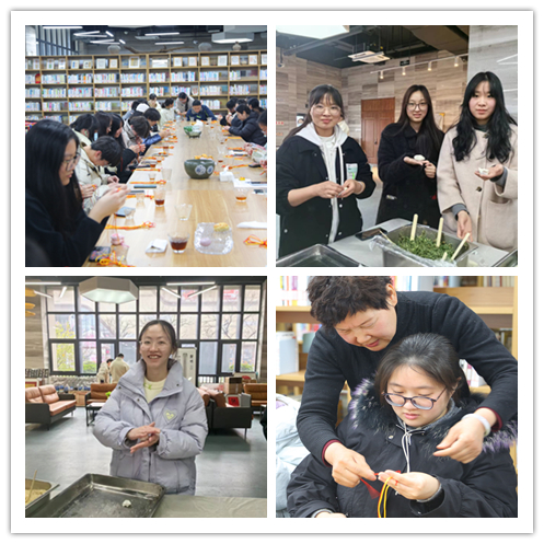 座谈会结束后,老师和学生们一起开展编织中国结、搓汤圆、包饺子等趣味活动。伶俐精巧的编织挂件,年味十足的汤圆水饺,大家沉浸在一片欢声笑语中。