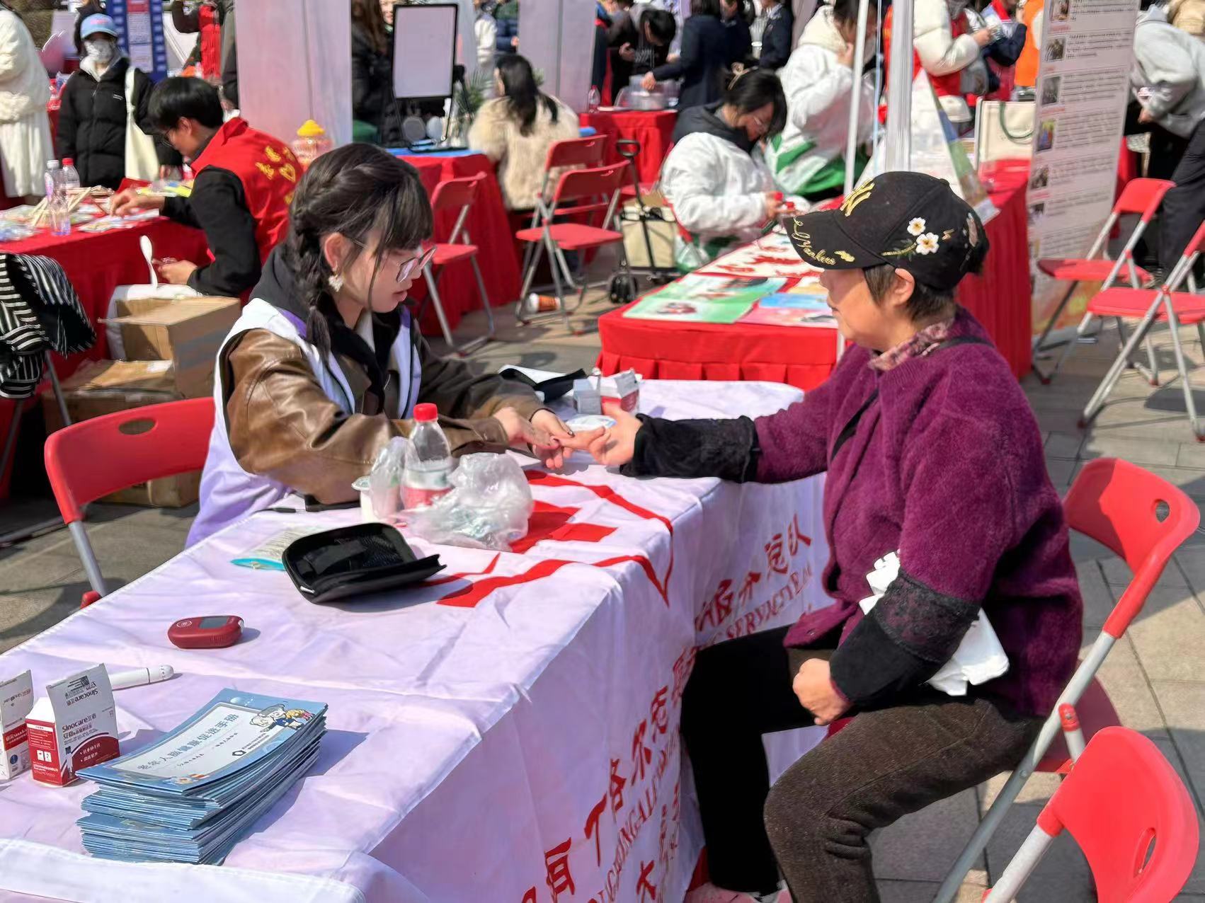 活动现场,南丁格尔养老照护志愿服务团队成员为老年人测量血压和血糖,开展健康体检。同时,利用团队的《老年人脑健康促进手册》,以通俗易懂的方式,向老年人科普“健脑手指操”等健康知识,深受老年人喜爱。