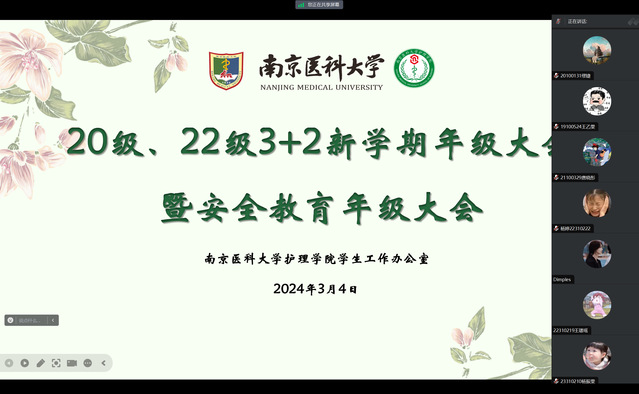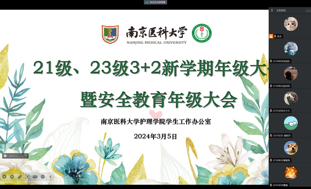学期初,2020级、2021级、2022级3+2、2023级3+2新学期年级大会顺利召开。会议上,张未老师首先进行了安全教育,她用“生命只有一次,‘赌’不起”警惕同学们,注意安全用电,绝不可以使用违章电器,熟知逃生通道,进行消防演习,会使用消防栓和灭火器。同时,她着重进行了心理健康教育,鼓励同学们做“多巴胺”大学生,并再次宣传心理问题咨询渠道。最后,结合近日热门话题,她鼓励同学们树立爱国主义情怀,增强民族自信心。最后,张未老师用《年锦》歌词“岁岁无忧、欢喜无恙、长乐永安康”祝福同学们新学期在学业和生活上充实且顺利。