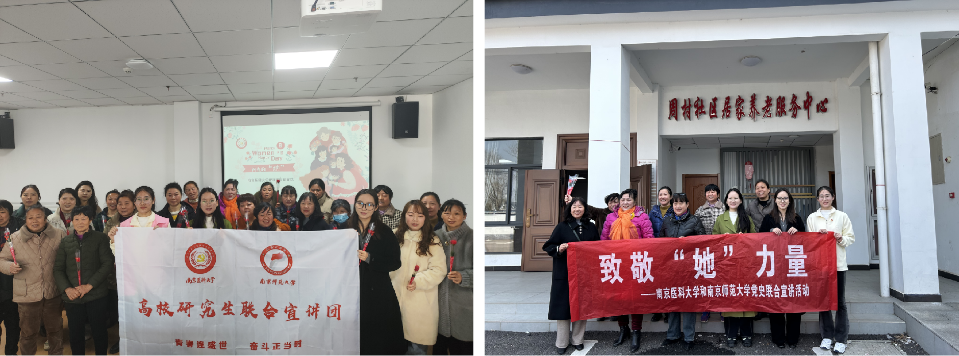 “三八”妇女节,我院“南医微天使”微党课宣讲团联合南京师范大学马克思主义学院红旗宣讲团到江宁区谷里街道周村社区服务中心开展“致敬‘她’力量”——党史联合宣讲活动。