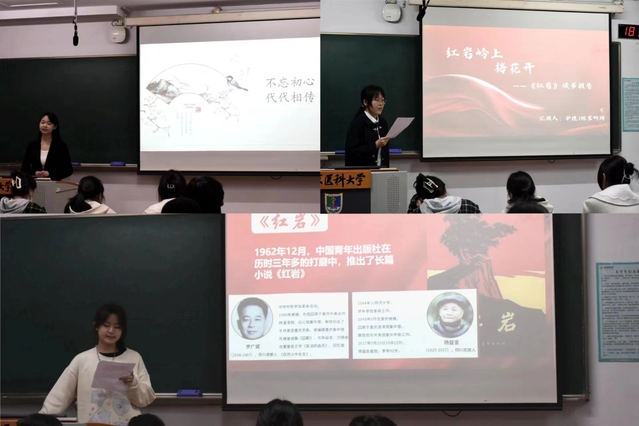 李佳媛同学以“万变守其心,吾心展未来”为主题,道出了对《天使的微笑》的人生感悟。宋昕玥同学在音乐的烘托下分享了《红岩》一书的故事以及其中的精神内涵。刘雅娟同学也选择了《红岩》一书,发出了“赓续红色血脉,撰写金色辉煌”的号召。