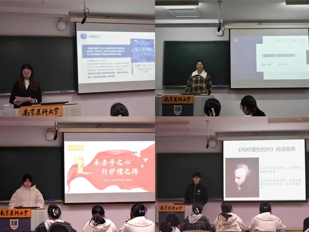 首先上场的李雅欣同学就《被讨厌的勇气》一书说出了关于勇气、自由和自我价值的深入思考。邓辉同学分享了《献给阿尔吉侬的花束》一书中对生命价值的启示意义。周佳艺同学以“承赤子之心,行护理之路”为主题介绍了《万里风雨路,一颗赤子心》一书。张昊翔同学则分享了《纯粹理性批判》中的哲学内涵。