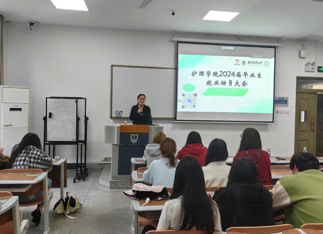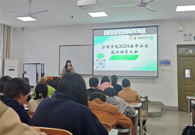 为全面推进2024届毕业生就业工作,加强对毕业生的就业帮扶,促进毕业生高质量就业,4月2日,九游娱乐(JIUYOU)官方网站_9YOU GAME开展2024届毕业生就业指导讲座。南京医科大学第一附属医院护理部副主任林征、大学生就业与创业指导中心郭慧初、九游娱乐(JIUYOU)官方网站_9YOU GAME副书记、副院长高兰天、毕业班辅导员张未老师以及全体2024届毕业生参加。本次推进会由张未老师主持。