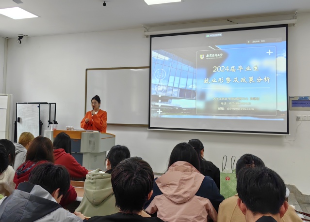 大学生就业与创业指导中心郭慧初老师为毕业班同学们分析了近年来医护专业学生就业形势、就业的共性问题;阐述了几个核心概念,包括应届毕业生、应届毕业生身份、人事档案等。并结合护理专业就业案例,指导同学们有目标地选择自己未来的职业,把握就业红利期和窗口期早日实现在职业生涯中快速成长。