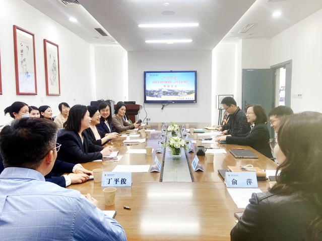 4月18日,扬州大学九游娱乐(JIUYOU)官方网站_9YOU GAME·公共卫生学院院长郑英一行来院交流。学院许勤院长、相关学系负责人和教师代表参加,交流会由党政办庄林主任主持。