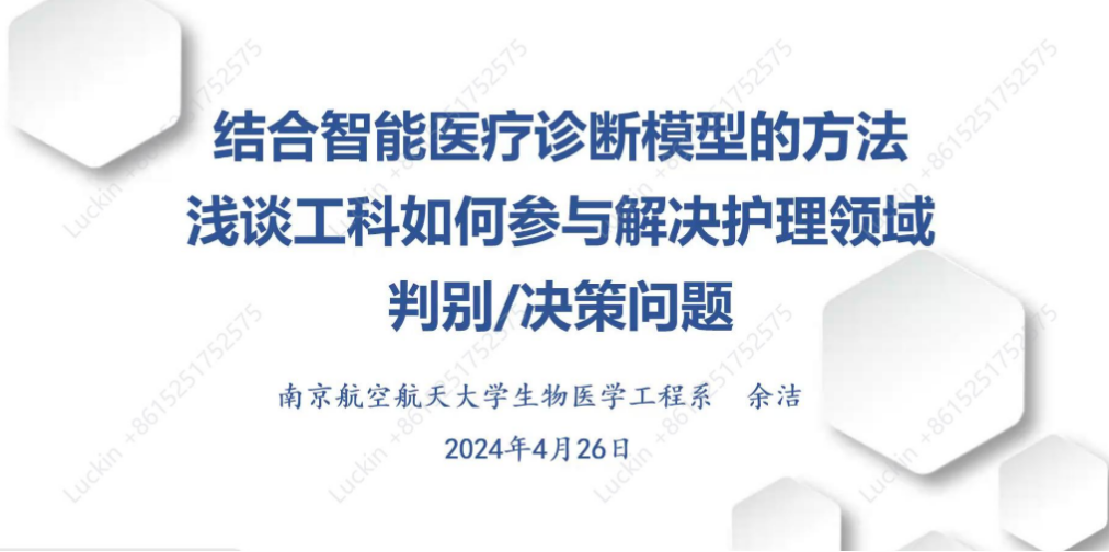 接着,由南京航空航天大学生物医学工程系的余洁博士针对“结合智能医疗诊断模型的方法--浅谈工科如何参与解决护理问题”的主题进行了深入分享。余洁博士详尽地阐述了她博士课题的研究路径与初步成果,并以“多模态研究”、护理信息系统(NIS)及伤口智能评估系统的研发为例,详细探讨了如何将工科的理论知识与技术方法应用于护理决策问题的实际解决中。她鼓励老师们积极拓宽数据类型、创新研究方法、丰富研究内容,以此攻克护理领域的关键难题。余洁博士的分享不仅为护理人员提供了新的科研视角,也为护理学科与工科、公共卫生、人工智能、医学信息学、大数据研究等领域的深度融合与交互提供了重要启示,对推动护理科研产出更多原创性、突破性的成果起到了积极的推动作用。