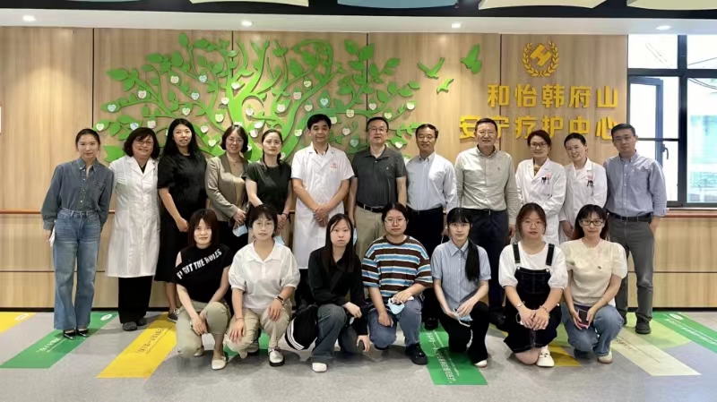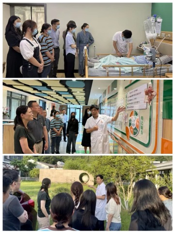 签约揭牌仪式后,双方就党建劳育、志愿服务、社会实践、就业科研等展开充分交流。纪光伟主任带领师生参观安宁疗护中心,中心以人为本,以小见大,综合运用医学、护理、心理、社会等多学科知识和技术,为终末期患者和家属提供专业化、人性化的全方位服务。此外,纪主任带领师生探访3位安宁疗护患者,开展床边实践教育,以生动的案例为师生带来一堂生动的思想政治教育课。