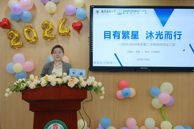 进修教师张筱童(第一附属医院),重回南医大校园感慨颇多,从教学、科研、参与活动、成果与展望方面进行了汇报,表示在回到临床岗位后,会将学习到的新的教学理念与方法更好的运用在临床教学中,也对医院实习生带教、同等学力研究生培养、驻点班推进工作等方面做了展望。从2005年入学九游娱乐(JIUYOU)官方网站_9YOU GAME至今,已和学院共同成长19年,在未来的道路上继续携手共进!