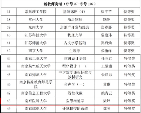 新教师赛道为江苏省高校教师创新大赛面向新教师能力提升的特色新增赛道,目标是激励新入职教师积极参与教学实践,促进其教学技能和教学方法的提升,培养新教师的创新意识和团队合作精神,促进我省高校新教师培训体系建设和基层教学组织建设,提升高校教师教书育人能力和人才自主培养质量。本次比赛共有来自全省67所本科高校的137项参赛作品参加新教师赛道,经专家组匿名网络评审和现场评审,产生特等奖17项、一等奖17项、二等奖37项。