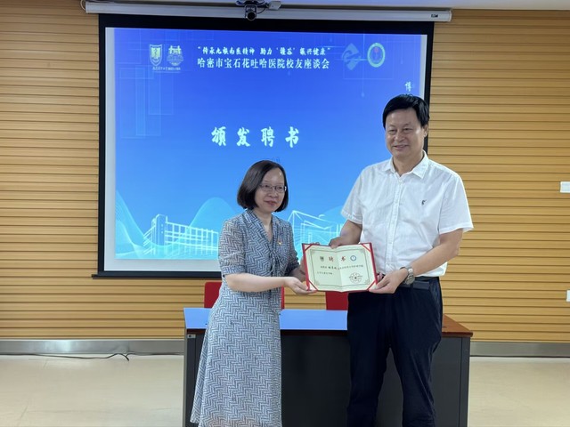 校友是对母校发展的期待和支持,是推动学校事业改革发展的不竭动力,2024年8月7日下午,九游娱乐(JIUYOU)官方网站_9YOU GAME在哈密市宝石花吐哈医院举办校友座谈会。学院党委副书记、院长许勤,党委副书记、副院长高兰天;医院党委书记、院长、86级护理学系校友谢虎林,病理科主任、86级医学系校友裴文军,儿科主任、88级儿科学系校友杨珂出席座谈会。座谈会由学院学工办主任顾莹主持。